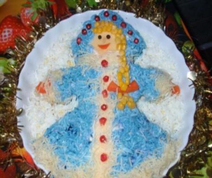 Салат «Снегурочка» – с копченой курицей и плавленным сырком.