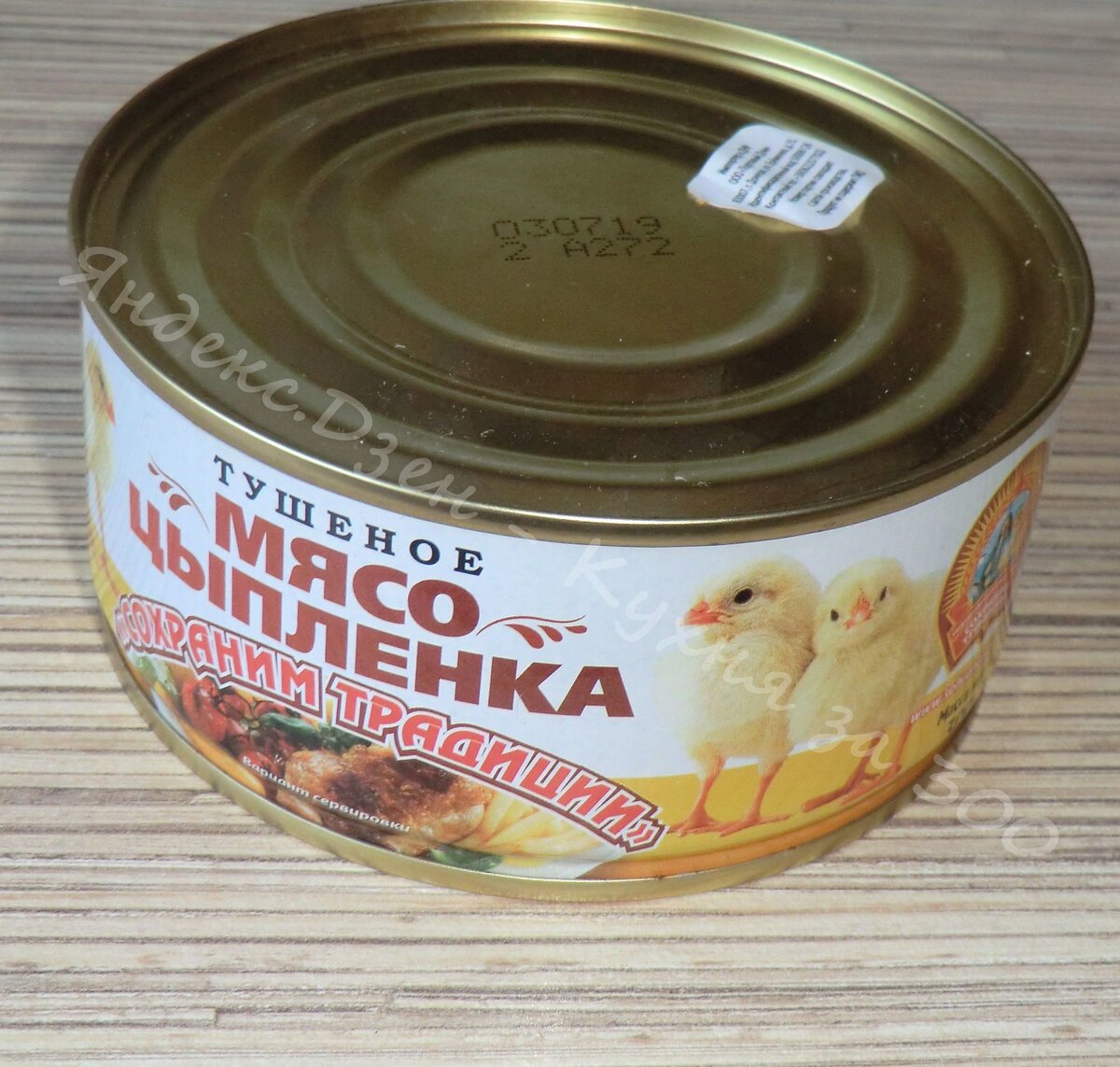 Некоторое время назад я уже рассказывал про утиную тушенку, на которую повёлся из-за низкой её цены и красивой баночки. Одновременно была куплена и куриная, точнее, как написано на банке – тушенка из цыплят. Разочарованный первой дегустацией, я без особых надежд вертел в руке красивую баночку, надеясь всё же, на то, что хоть этот продукт будет получше. Курица, всё же. Старенькая открывашка вгрызлась в металл и совершив оборот, взору моему предстал … холодец, с чем-то, похожим на паровую котлету внутри. Выложил содержимое банки на тарелку, что бы получше рассмотреть, разогреть и попробовать на вкус, каков он нынче, цыплёнок то тушеный. Разломав холодец и «котлету» увидел всё тот же крупно рубленый фарш вперемешку с костями, нечто похожее на куриный хвост, кое где встречались оранжевые пятна кусочков моркови. Немного попробовал на вкус. Наверное, напоминает кошачий корм только специй не пожалели. Ну, хоть что-то радует, иначе было бы вообще полное разочарование. Впрочем, возможно