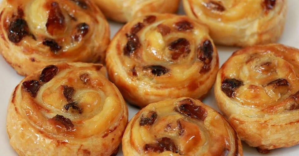 Избегая участка, промазанного яйцом, посыпаем поверхность сначала корицей, потом изюмом. Скатываем тесто в тугой рулет, заклеиваем яичный край и нарезаем на 20 одинаковых кусочков. Выкладываем булочки на смазанный растительным маслом противень срезами-ракушками вверх и смазываем их растительным маслом. Даём булочкам постоять в тепле 20 минут, проверяя, чтобы они не расклеились, не развернулись и ставим выпекаться в разогретую духовку на 30 минут, выпекать при температуре 200 градусов. Как только булки станут золотыми, достаем противень и быстро промазываем их сверху повидлом (на выбор). Даём булочкам остыть и снимаем с противня.