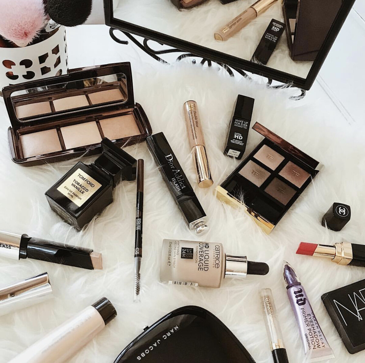 Сегодня расскажу вам о том, какие средства у меня есть в личной косметичке, с помощью которых я делаю ежедневный легкий макияж. Да, средств много. Но как раз чтобы сделать легкий естественный макияж обычно нужно больше косметики, чем чтобы сделать "боевой раскрас". Парадокс? :) Итак, поехали! Шаг №1 Консилер Консилер – это обязательный и первый шаг в моём повседневном макияже. Из-за анатомического строения глаз, у меня очень выявлена носослёзная борозда, и без консилера тут ну никак не обойтись. В последнее время я отдаю предпочтение консилеру от NARS – Soft Matte Complete Concealer. Он хорошо перекрывает несовершенства и не сушит нежную кожу под глазами. Упаковка сделана в форме шайбы, и тем самым продукт очень удобно набирать на пальчик и легко и быстро распределять на коже. В общем, это любовь! Шаг №2 Тональная основа и прозрачная пудра Следующий шаг – тональная основа. И тут мне крайне полюбилась тональная основа от Charlotte Tilbury под названием Light Wonder Foundation. Этот б