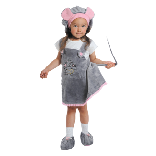 Костюм для самый маленьких "мышек". Серый бархатный сарафанчик дополнен очаровательным беретом с ушками из той же ткани и ботиночками. А под сарафанчик можно надеть белую футболку. И не жарко, и красиво.