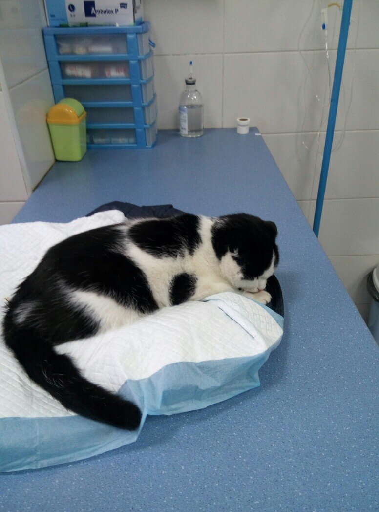 Сегодня уже в 8 утра Ирина С. с котенком Сёмой были в клинике. Это была опять бессонная ночь в сельском мини-приюте. Температура упала, врач сказал что это не хорошо. Потом уколола циклоферон, она чуть поднялась. В клинике сделали клизму, так как для такого заболевания не обычно, что нет диареи. Оказалось там жуткое скопление погибших глистов, которые в свою очередь давали такую интоксикацию. Неделю назад волонтер всем проводила обработку, а вот у него из-за проблем с позвоночником всегда задержки со стулом были. Вислоушка в приюте: можно ли было все это избежать? Потом малыша капали три с половиной часа, уйма уколов, сделали сыворотку. Он всё терпел, врач сказал, что очень мужественно все переносит. Заплатила Ирина С. сегодня только за сыворотку и за такси. Врач сказал, что расчет будет после лечения, очень тяжелое состояние у Семочки, будем надеяться на лучшее. Завтра они опять поедут, будут делать опять капельницу и вводить сыворотку. Потом еще нужно будет ввести сыворотку Марик