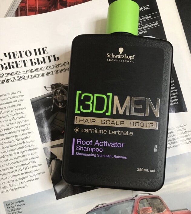 Сегодня хочу поговорить о шампуне. Я, как и все девушки, привыкла использовать только женские шампуни. Никогда бы не подумала, что заменю их на один мужской! Мои волосы немного повреждены от окрашивания, впринципе плотные, густые, кожа головы не жирная. Когда корни волос не свежие, сразу чувствуешь себя неуверенно и я решила попробовать мужской шампунь Schwarzkopf 3D Men Root Activator Shampoo. Купила я его изначально для папы, но по скольку в один прекрасный момент мой шампунь закончился, я решила взять его и была приятно удивлена. Производитель заявляет: «Шампунь-активатор роста волос. Стимулирует волосяные луковицы и помогает волосам восстановить плотность, а также сокращает потерю волос. Пантенол, таурин и карнитин - это три ключевых компонента, которые воздействуют одновременно на волосы, кожу головы и корни волос, влияя на факторы роста волос и доставляя питательные вещества в волосяные фолликулы». Я не думаю, что какой-то шампунь может повлиять на рост волос, тут я наверное не с