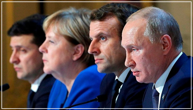 Большая политика I Света БАТРАКОВА © ДД 10 декабря 2019, 02:14 ПРЕЗИДЕНТЫ России, Украины, Франции и канцлер Германии остались довольны результатами встречи в Париже. Им удалось достичь взаимопонимания по основному вопросу: ситуация на Донбассе. А вот по остальным темам Владимир Путин и Владимир Зеленский «договорились договариваться». И это позволяет надеяться на то, что Россия и Украина в будущем смогут если не стать снова братьями, то остаться хотя бы в корректных, партнёрских отношениях. ИТАК, о чём «нормандской» четвёрке удалось договориться на парижской встрече? Первой, кстати, с 2016 года. И впервые именно здесь президенты России и Украины встретились, что называется, лицом к лицу. Встретились плодотворно. По крайней мере, для Донбасса. В ближайшее время будет произведён обмен пленными по принципу всех на всех. А сразу в трёх районах – возле населённых пунктов Золотое и Петровское, а также станицы Луганской – военные силы с обеих сторон покинут места дислокации. Владимир Путин п