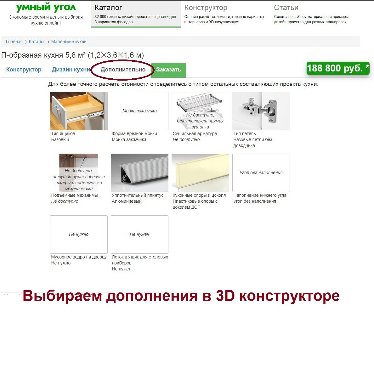 Первоначально каждый проект кухни (будь то построенный вами в конструкторе или же выбранный из каталога готовых проектов) посчитан с минимально необходимыми базовыми составляющими. Например, уплотнительный плинтус посчитан алюминиевый. Хотя вы можете выбрать и другой тип плинтуса. В разделе «дополнительно» вы можете найти различные самые популярные дополнения и опции по фурнитуре. Вы можете выбрать тип ящиков, подъёмных механизмов, петель и так далее. Разумеется, что сразу после ЛЮБОГО изменения в нашем конструкторе происходит мгновенный пересчёт цены кухни. Это очень удобно! Если вас интересует тема дизайна, то подписывайтесь на нас ВКонтакте https://vk.com/umugol Инстаграмме https://www.instagram.com/umugol.ru/ ЯндексДзене https://zen.yandex.ru/id/5bf56fee87c57b00aa789897 #проекткухни #конструкторкухни #кухни #кухниспб #3Dконструктор