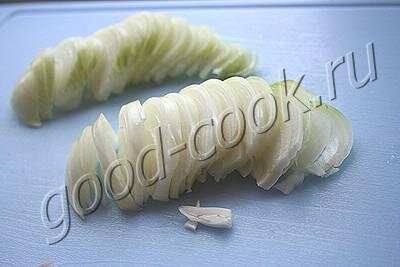 Лук очистить и порезать полукольцами. Положить в сотейник с растительным маслом и поставить на средний огонь.