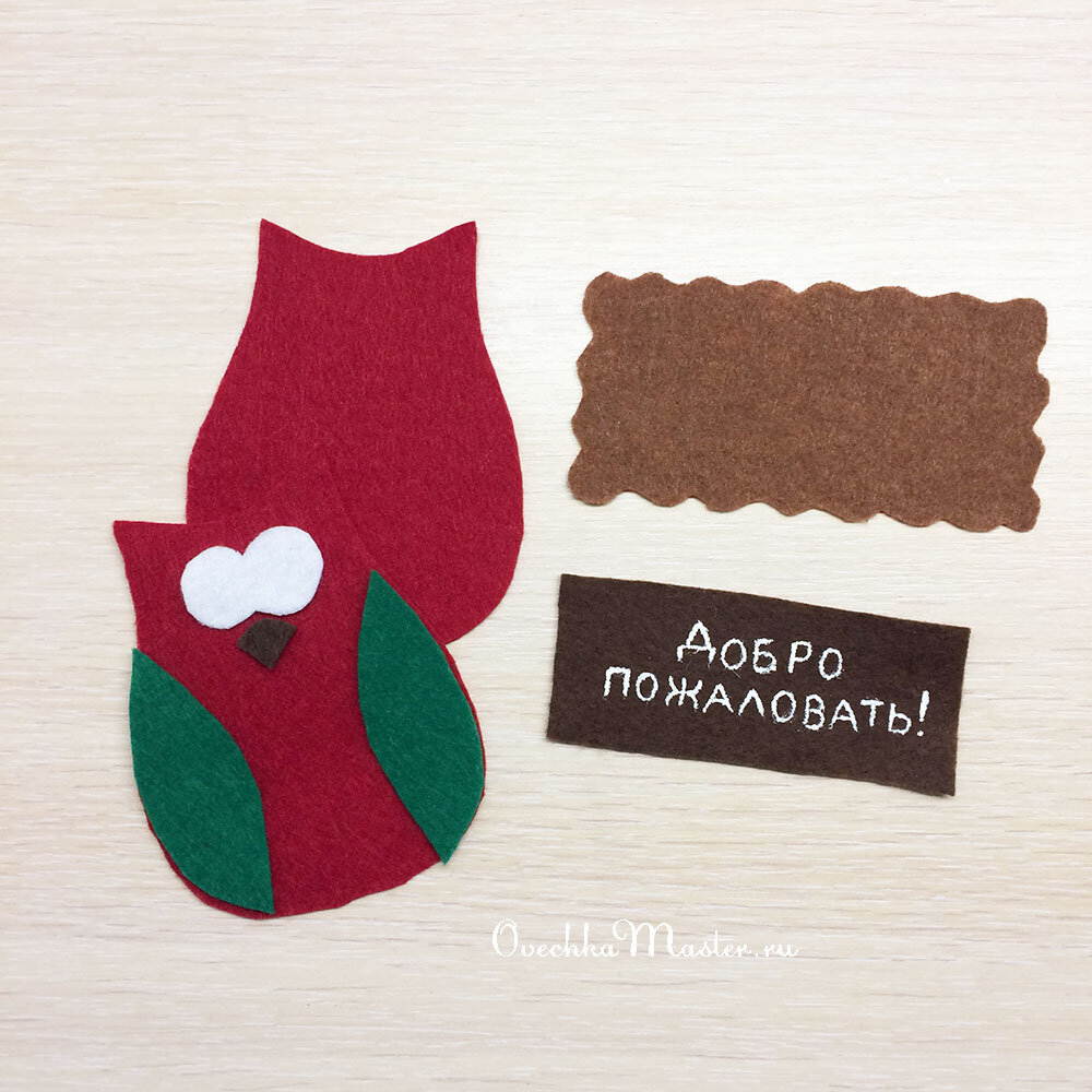 Всем добрый день. Фетр такой чудесный материал, с ним легко работать даже детям. Из него просто вырезать, он не сыпется, не скользит, одним словом, с ним могут дети работать точно также, как с бумагой... В магазинах полно маленьких игрушек, сувениров из фетра. Это различные снеговики, мышки, птички, колокольчики, елочки... Но если присмотреться, все они наштампованы по-быстрому, детали просто приклеены, порой абы как. Я лично вообще не воспринимаю такие игрушки с точки зрения подарка. Но и цена у них копеечная. Я люблю шить из фетра. Это не быстро, мелкие стежки, почти ювелирная работа, но результат стоит того! Итак, вырезаю детали из фетра. Табличка "Добро пожаловать" - это для следующего зимнего декоративного окна, как собственно и эта сова. Дальше сначала пришиваю петельными декоративными стежками крылья, глаза и нос. Зрачки делаю из шерсти. Дальше буду делать вышивку. Вышивка подойдет абсолютно любая. Не обязательно делать сложный симметричный рисунок. На мой взгляд, главное - пр