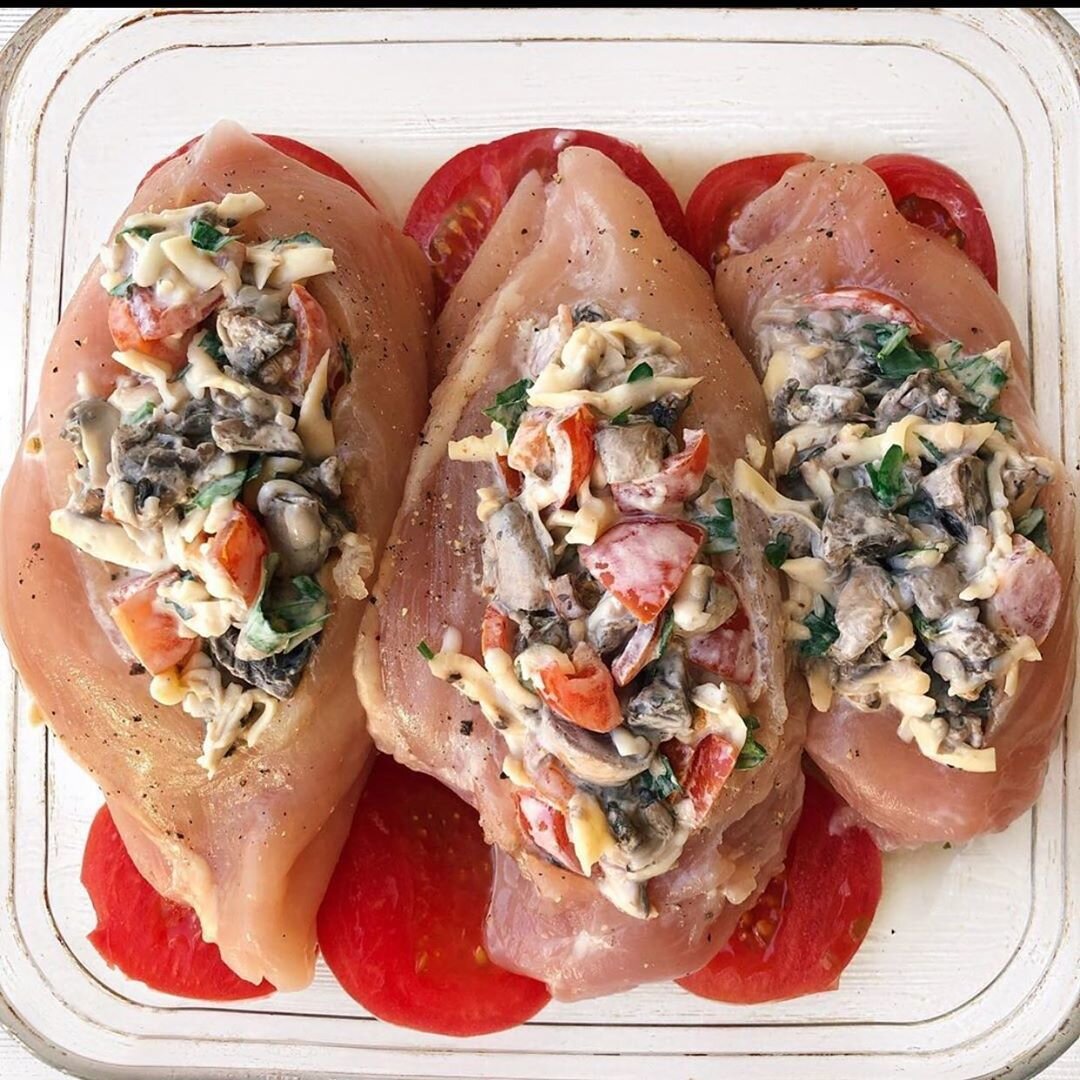 Как приготовить самую сочную грудку?😋 КУРИНЫЕ «КАРМАШКИ» С НАЧИНКОЙ 🔸куриное филе - 500 г 🔸помидоры 50 г 🔸сыр 60 г 🔸шампиньоны (можно без них) 🔸сметана 15% - 2 ст.л 🔸петрушка по вкусу 🔸соль, специи по вкусу Ингредиенты могут быть различные. Фантазия у всех разная, и главное просто поэкспериментировать! Приготовление: На грудке делаем разрезы в виде кармашков. Грудку солим, посыпаем солью и перцем. Для начинки: смешиваем тертый сыр, нарезанные мелкими кубиками помидоры, шампиньоны, петрушку и сметану, солим по вкусу и перемешиваем. На дно формы выкладываем помидоры, нарезанные кружочками. На помидоры выкладываем грудку, наполнеяем кармашки начинкой (лучше накладывать с горкой, потому что в процессе выпекания она сядет). Ставим в духовку разогретую до 180 градусов до готовности. Приятного аппетита ☺️