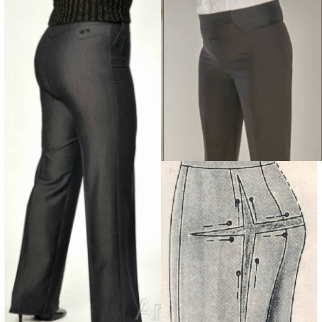 Поговорим о том как корректировать выкройку облегающих брюк в соответствии с особенностями фигуры. Рассмотрим два варианта: большой живот и большие ягодицы. БОЛЬШОЙ ЖИВОТ Так как выкройка строится по индивидуальным размерам, то объемы талии и бедер (объем бедер без учета живота) встанут нужные. Но вот длина среднего шва будет мала, т.к. мы меряем длину от талии до бедер по прямой. И боковой шов «уйдёт» вперёд.