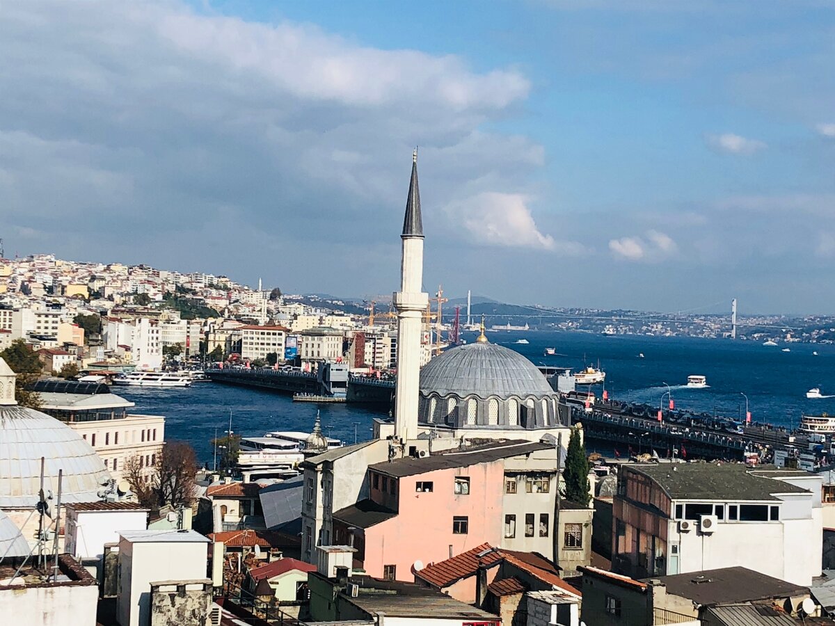 Хочу начать с того, что Стамбул потрясающе красивый огромный город. Здесь есть казалось бы все: моря, проливы, мечети, острова, вкусная кухня, музеи, морские прогулки, турецкий фастфуд, пляжный отдых, восточные сладости, шоппинг и другое. В районе Suleymaniye есть несколько открытых кафе на крышах зданий. И эти кафе трудно заметить, если бы около входа в каждое здание вас не приглашал администратор, нахваливая его заведение и кухню. Славятся эти кафе своими панорамными видами на Стамбул. На вид все кафе одинаковые и расположены на открытой веранде крыш зданий разной этажности. Мы выбрали кафе 7TepeSahne. Расположено оно по адресу: Suleymaniye Ord.Prof.Dr.Cemil Birsel Cd.No 25/8. Кафе находится на крыше 4-х этажного здания. До 4 этажа вас администратор провожает на лифте, затем по лестнице нужно подняться на открытую веранду. Вид с веранды открывается просто фантастический. Вы увидите и золотой рог и пролив Босфор и мечеть Сулеймание. Вообщем, почти весь Стамбул будет как на