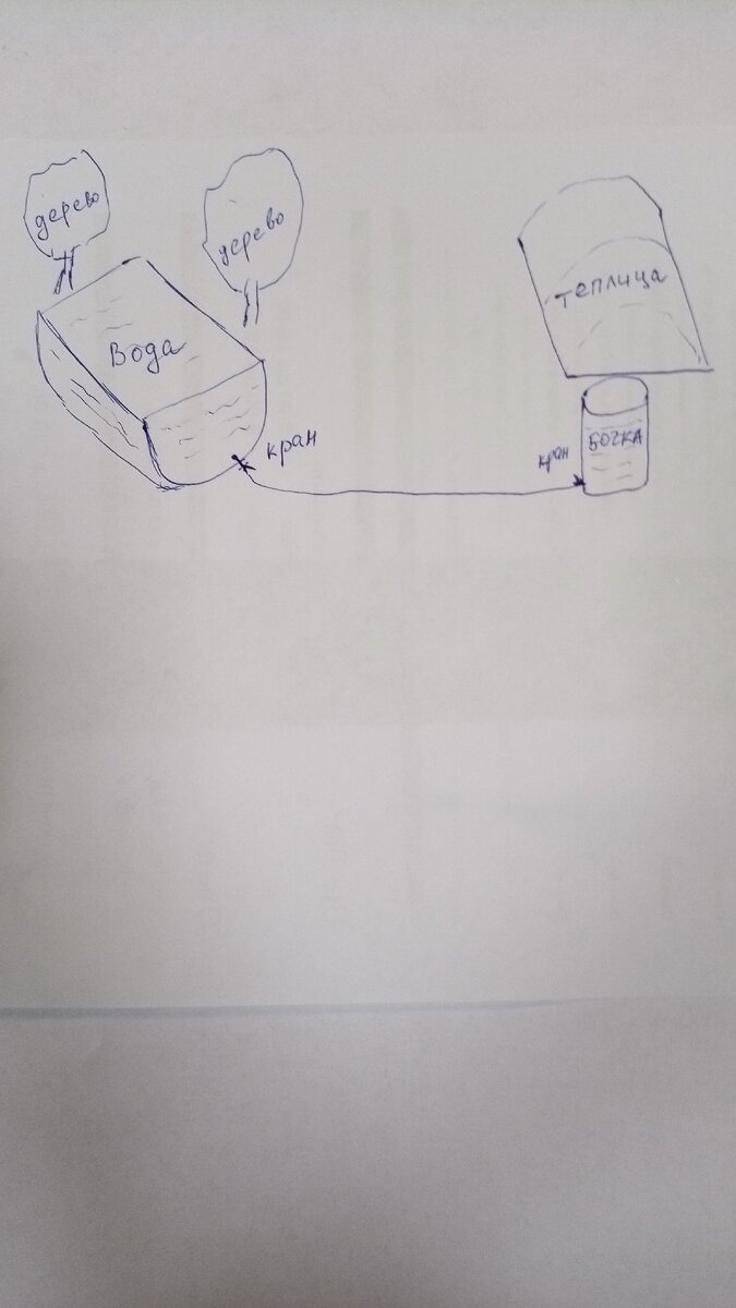 Вместе с купленным домом мне досталась половина цистерны на 6 кубов для воды. Холодной водой поливать растения не рекомендуется. Но ходить к ней через весь огород было не удобно и набирать воду из крана в поливальник не так быстро как черпать лейкой из бочки сверху. Решил изобрести систему при которой бочка стоит у теплицы и наполняется теплой водой из цистерны сама. По принципу сообщающихся сосудов бочка у теплицы и цистерна соединены шлангом. Подпитка воды снизу. Когда в бочке черпаем ведром или лейкой воду, то она сама пополняется из цистерны теплой водой. В бочку и цистерну врезаны шаровые краны. Они нужны для перекрытия воды и профилактики шланга и ёмкостеи. Цистерна стоит около летней кухни. Она накрыта шифером. Вокруг деревья. Испарение воды минимальное. С крыш дома, сарая и даже дома соседей вода по желобам стекает в эту ёмкость. Бочка у теплицы должна быть чуть выше уровня воды в цистерне. Иначе если не уследить и не перекрыть кран, то вода потечёт через край. Теперь мне дост