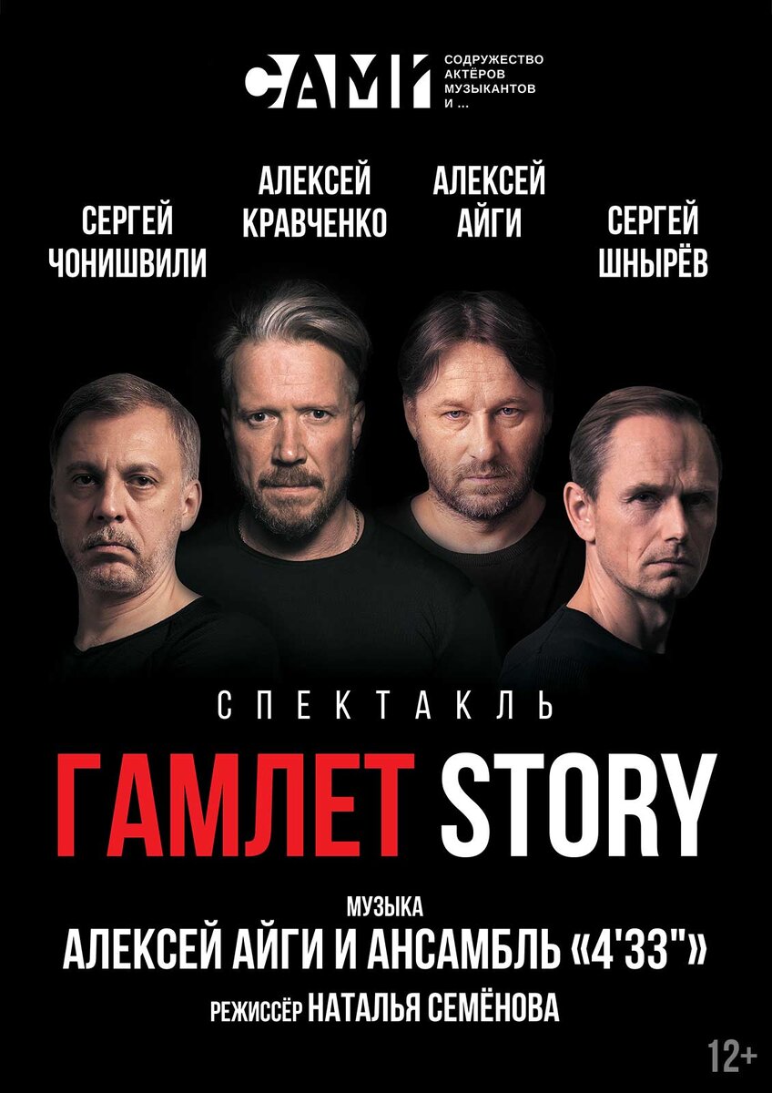 Есть спектакли, которые раскрывают талант актёров, дают насладиться игрой, голосами, интонацией. Актёры чувствуют реакцию зала и от этого играют ещё ярче. Гамлетstory никакой не Шекспир, да и от самого Гамлета в нем только название. Это скорее размышления 3х мужчин о жизни, мире, отношениях, только все это жёстко и немного даже трагично, с надрывом . Для меня конечно спектакль прекрасен Сергеем Чонишвили. Его экспрессия зашкаливает, мне кажется, он непризнаный гений театра и кино. Сергей Щнырев мне понравился ещё в Онегине. А вот Алексей Кравченко оказался очень необычным Гамлетом. Для меня он актёр "Спецназа", в театре и в кино в других ролях я его и не видела. Тут же было интересно и необычно. У него нет такого владения голосом, как у Чонишвили, но как чтец он хорош! Отдельно хочется отметить Алексея Айги и его оркестр 4'33. Ведь почти половина спектакля - это музыка, чаще красивая и необычная, но скорее тяжёлая и в какие-то моменты гнятущая. Хотя 2 отрывка для меня были с