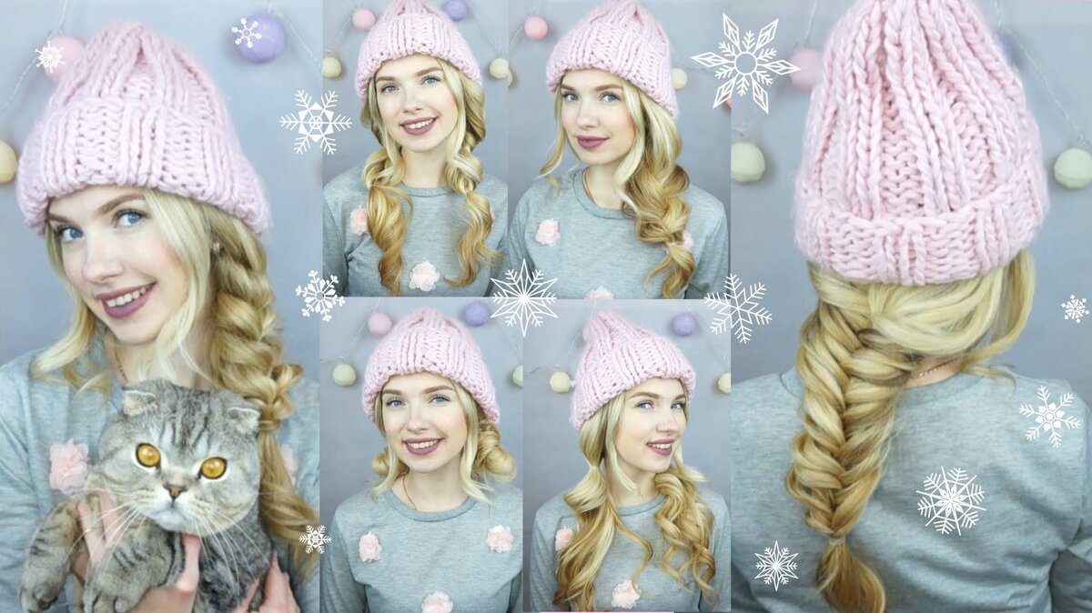 «Как носить шапку красиво?» - этим вопросом задаются девушки каждую зиму. Я предлагаю вашему вниманию видео уроки множества красивых причёсок под шапку, которые преобразят ваш образ этой зимой, расскажу, как шапку точно носить не стоит. В этом видео очень простые и быстрые прически для ленивых, каждую из которых вы легко повторите на себе быстрее, чем за пять минут! Они отлично подойдут на прогулку, в школу, в универ, на работу. Как показывает практика, шапка не любит зализанных причёсок. С шапкой очень идут распущенные волосы, чтобы по бокам лица красовались локоны или прямые пряди. Косы, пучки отлично смотрятся, если они объемные. Перекиньте локоны на одну сторону, у лица оставьте тонкие прядки. Плетём простую косичку с одной стороны, завяжем на конце силиконовой резинкой. Потянем в стороны за каждый элемент плетения, это сделает косичку объемной. Первая прическа готова! Следущая прическа - объемная коса рыбий хвост. На YouTube канале Beautymaker смотрите подробный урок того