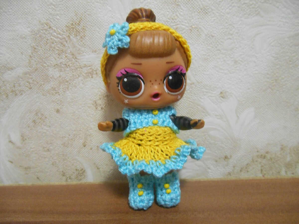 Сегодня мы будем вязать крючком жёлто-голубой наряд для куклы Лол. Наряд, который я назвала "Незабудка", потому что для его создания я использовала нитки ИРИС голубого и желтого цвета.