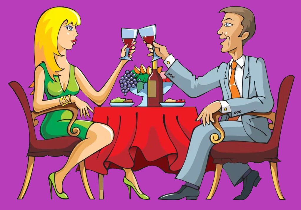 Заходит в ресторан , подходит к столику где они сидят воркуют. Женщина в гневе начинает диалог