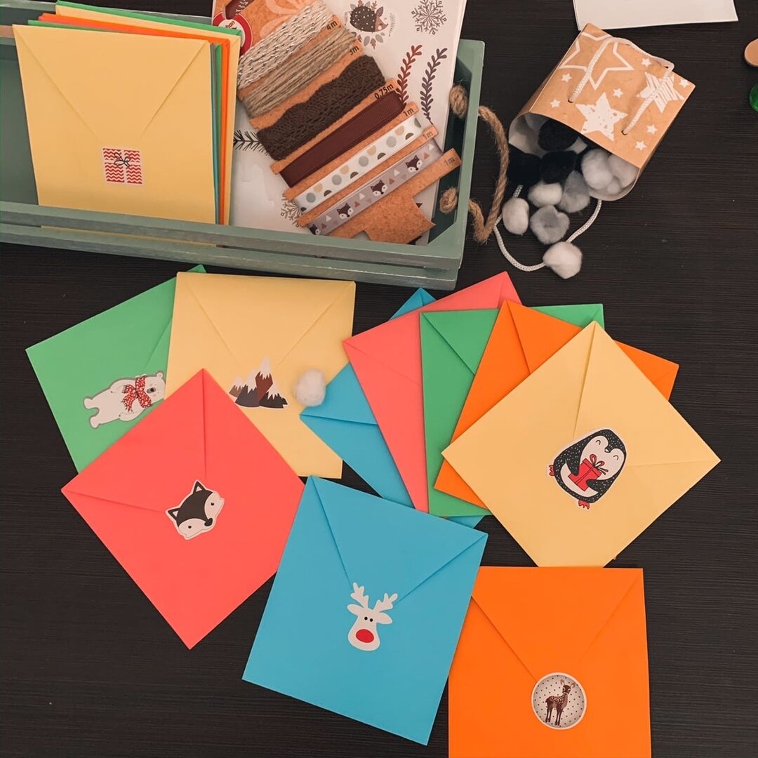 Я сделала выборку записок для взрослых и детей (отдельно). На конвертах, предназначенных для детей, карандашом нарисовала маленькие звёздочки, чтобы в процессе работы не перепутать.