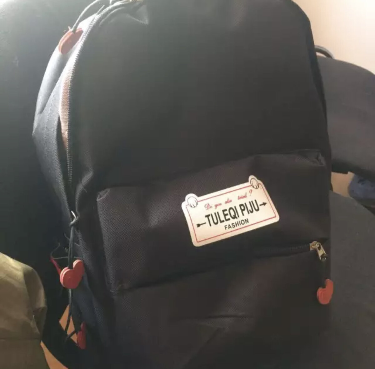 Набор: рюкзак, пенал, сумка и клатч (фото последнего не загрузила, нет места). Материал плотный и приятный, в рюкзаке множество дополнительных карманов. Рюкзак сделан из простого черного материала как на фото. Все аксессуары присутствуют. Единственное что огорчило не качественные лямки, сделаны как будто с тонкой мешковины. Внутри много карманов и отделов, что очень удобно. Пенал тоненький но прочный, не очень громоздкой но и вместительный. Чисто черный без украшений и рисунков. Есть петелька с того же материала что и лямки у рюкзака. Сумка простая и удобная, без молнии. Можно использовать при походе за продуктами. При желании молнию можно вшить. Материал плотный и качественный ярко черного цвета. Клатч маленький спортивного типа, вместится маленький кошелек и телефон. Лямка очень длинная и не регулируется, из простой мешковины и вся смята, я ее обрезала из-за не товарного вида. В общем набор хороший еще и в подарок. Спасибо продавцу и али за такой сюрприз. В общем качество на 4,5 из-з