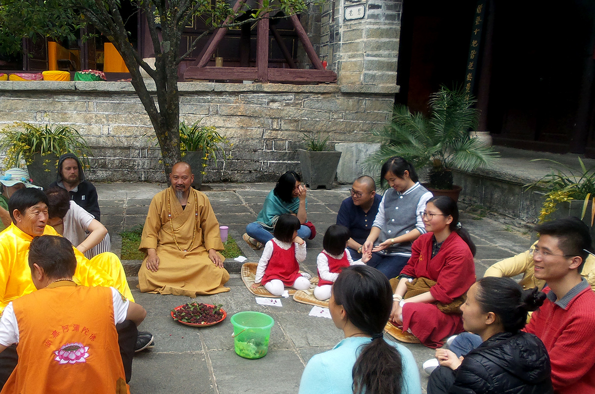 В кругу под деревом сидело несколько иностранцев и дюжина китайцев, люди подходили и уходили. Подсаживаясь кто ближе к настоятелю и даже у него за спиной, а кто дальше. Почти все китайцы подходя кланялись шифу произнося «Амитуофо», и уходя делали тоже самое. Иностранцы же чувствовали себя не уютно в церемониях, не понимали их смысла и приходя – уходя, стараясь не привлекать к себе внимания.