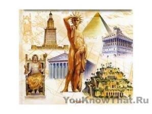 Семь чудес света Древнего Мира Семь великих памятников архитектуры, семь непревзойденных творений искусства древних мастеров захватывают и восхищают наши умы, а также заставляют задуматься о тех непреходящих ценностях, которые мы получили в наследство от наших далеких предков. Список с великолепной семеркой был составлен не за один день, а претендентам пришлось преодолеть нелегкий путь, прежде чем пополнить состав «избранных». Первые упоминания об этих поразительных монументах культуры и искусства можно найти в произведениях древних греков эпохи эллинизма. Величие построек, чудеса инженерной и архитектурной мысли восхищали умы греческих поэтов и сочинителей. Они считали их чем-то сверхъестественным, чем-то волшебным. Отсюда самые несравненные творения начали величать «чудесами». Цифра семь для этого списка выбрана совсем не случайно. Это число в греческой мифологии (как и во многих других) считается священным, особым, числом Аполлона, оно совершенно и законченно. Множество произве