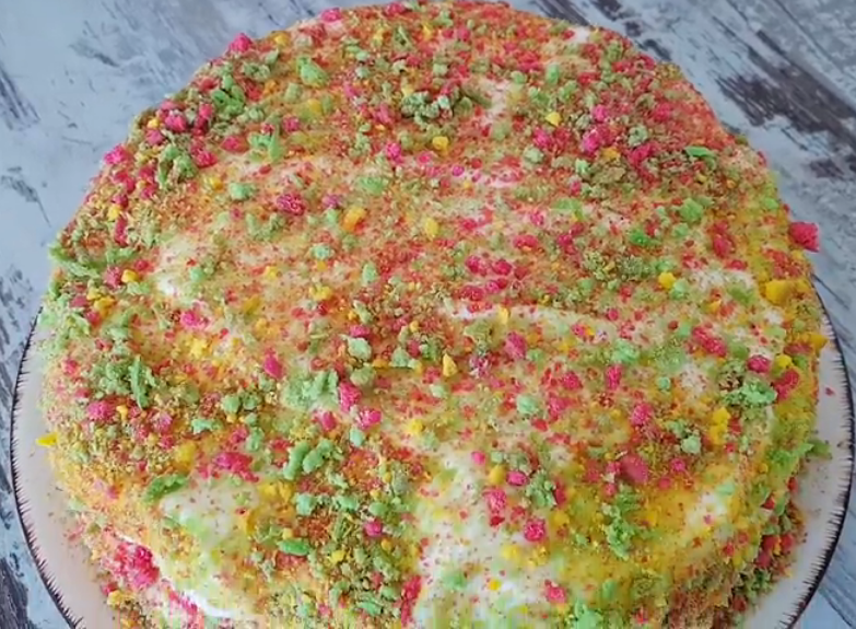 Всем привет сегодня я буду готовить нереально вкусный торт "хлопушка, для приготовления мне понадобиться: торт Ингредиенты: Бисквит (3 коржа 24 см) 200 гр сахара 5 яиц 340 гр муки 14 г. разрыхлителя щепотка соли 60 мл молока 60 мл растительного масла,красители Крем Сметана 20% - 400 г. Сгущенное молоко - 200 г. Сок одного лимона. Начинаю процесс с отделения желтка от белка у яиц, после добавляю щепотку соли в желтки и щепотку в белки, сахар 200 гр. делю пополам и по 100 гр. добавляю в желтки и белки, взбиваю в начале белки миксером до получения воздушного крема, теперь взбиваю желтки с сахаром, после сразу включу духовку на 180 градусов чтоб они у меня заранее нагрелась. Теперь в збитые желтки я добавляю 60 мл. молока и 60 мл. подсолнечного масла,,потом все перемешаю миксером,, в муку высыпаю пакетик разрыхлителя теперь половину муки добавляю в массу желтковую и перемешиваю до однородной массы, теперь остаток муки добавляю снова в эту же желтковую массу размешиваю лопаточкуй до