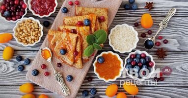 на 6 порций Мука рисовая 2 стакана Мука пшеничная высшего сорта 0.5 стакана Яйцо куриное 3 шт Йогурт 250 мл Сахар 60 граммов Соль щепотка Корица молотая1 ст.л Разрыхлитель теста1 ст.л Масло растительное 60 мл Мед для подачи Голубика для подачи Клюква для подачи Варенье для подачи Рисовые блины - полезная альтернатива привычным и обычным. О ценных достоинствах муки из риса написано немало, повторять весь Интернет смысла нет. Из практики скажу: рисовая мука отлично "ведёт" себя в любой выпечке, блинам же придаёт особую изюминку. И да, кстати: если уменьшить порцию сахара, а корицу не добавлять, то такие рисовые блины отлично сойдут за закусочный вариант, который легко можно дополнить и фаршем, и слабосолёной рыбкой, а на праздничный стол - и икрой. Как приготовить "Рисовые блины" 1. Рисовую муку просеять. 2. Смешать рисовую муку с пшеничной, добавить разрыхлитель, соль, молотую корицу - довести до однородности сухих ингредиентов. 3. Йогурт (можно фруктовый), яйца, сахар и растител