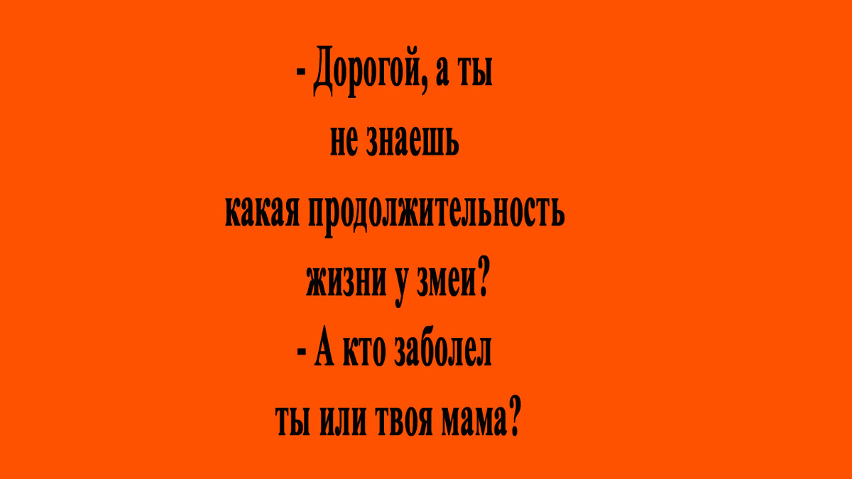 Пришла девушка к парню в гости. Попили чай, то да се. Пошла она в ванную. Потом выходит и говорит: - У тебя там два одинаковые полотенца висят, но с разной маркировкой. На одном «М», на другом «Ж». Я правильно вытерлась тем, что с пометкой «Ж». Ведь «М» - это для мужчины. - Нет дорогая, «М» - это для морды. **** Папа говорит взрослой дочери: - Запомни такую истину, мужчины делятся на две категории: Есть те, которые могут поднять рояль на десятый этаж. Есть те, кто может заплатить за то, чтобы занесли рояль на десятый этаж. **** - Дорогой, а ты не знаешь какая продолжительность жизни у змеи? - А кто заболел ты или твоя мама? **** Муж пришел домой после встречи с друзьями, которых давно не видел. Чтобы не будить жену, свет не включал, тихонько разделся, лег в постель и обнял ее. После слов тещи: - Наташа спит в детской, он протрезвел еще до того, как слетел с кровати. **** Идут по деревне Ваня с Маней, разговаривают. Тут коты начали свои серенады петь. Маня спрашивает: - Вань, а от
