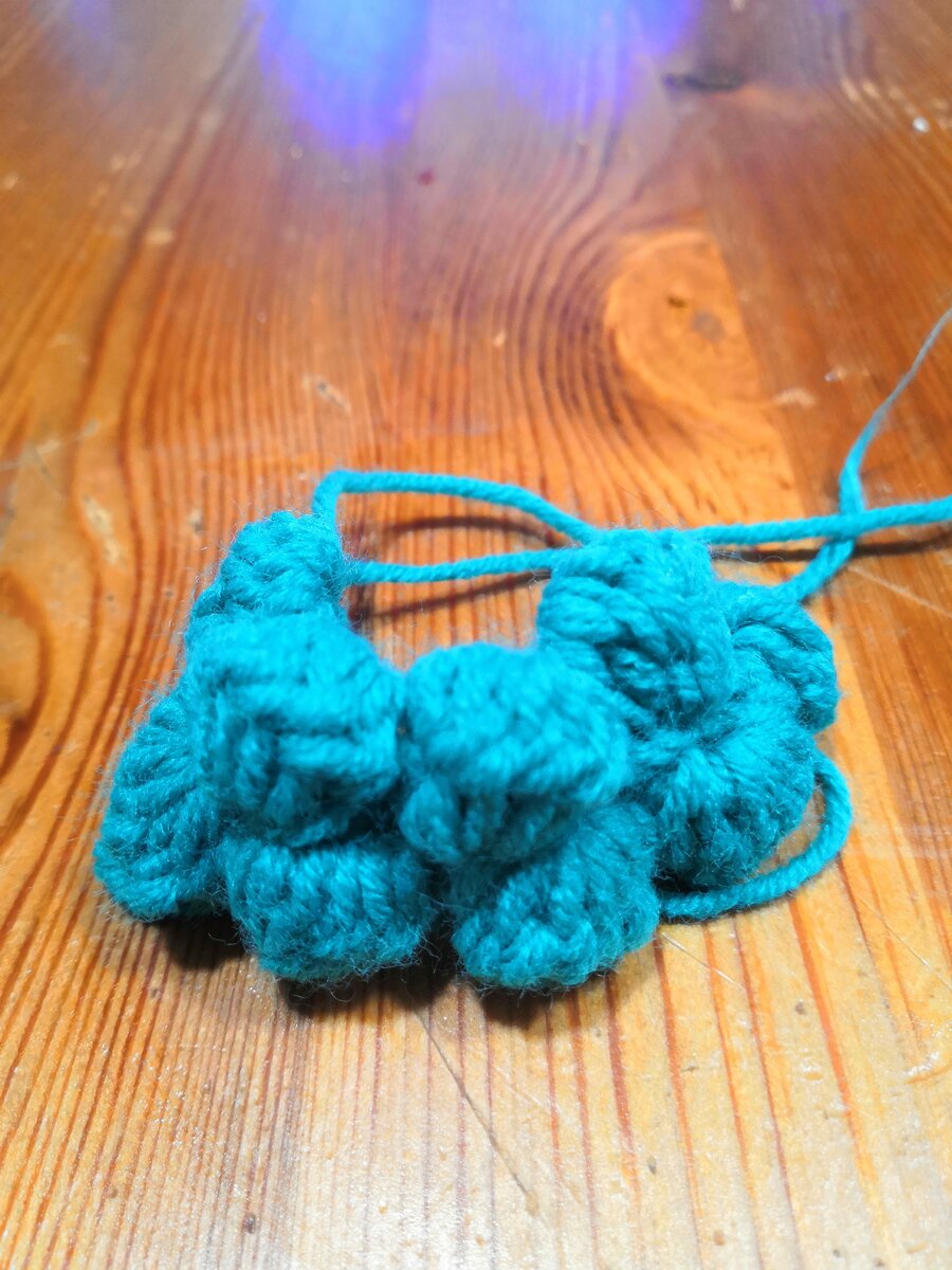 Мне нравится этот воздушный узор для отделки изделий. Как самостоятельное вязание оно достаточно громозкое и тяжёлое,учитывайте это при вязании. На каждый "пузырик" надо 2п. Для образца на 5 шариков я набрала 10в.п. +3п.подьема. Крючок в 3в.п.и в эту же петлю ещё 5с.н. (при желании можно делать столбики с двумя накидами). Замыкаем все это кольцо. Далее крючок в следующую в.п.и провязываем с.б.н. Далее 6с.н. В следующую воздушную п. И продолжаем так же как и первый пузырик до конца ряда. (6ст.н.в 1п.,с.б.н.,6с.н.в одну петлю, с.б.н. Первый ряд изнаночный. Поворачиваем вязание. Петля подъёма и далее с.б.н. В каждую петлю. Получается снова по 2п. На "пузырёк". 10п. Поворачиваем вязание. 3п. Подъёма и 6ст.н. В одну петлю. Повторяем 1 ряд. Так же можно вязать "пузырики" со сдвигом. Формируя их в шахмотном порядке. Лёгких Вам петелек.