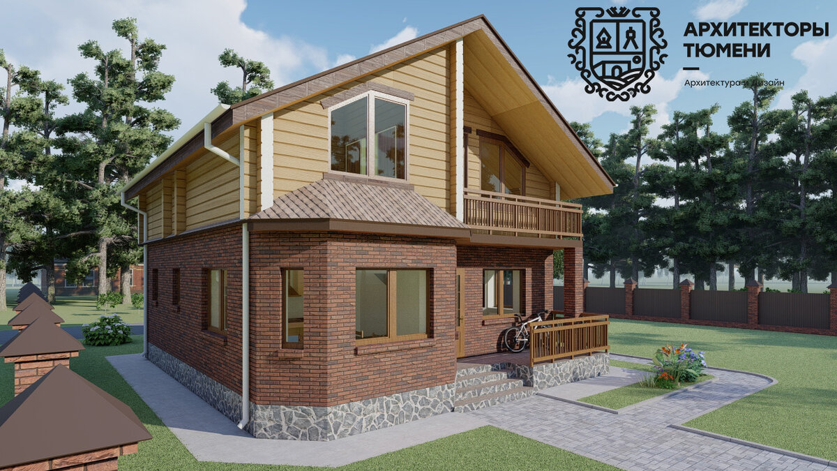 Оригинальный проект дома с мансардой 144 м2
