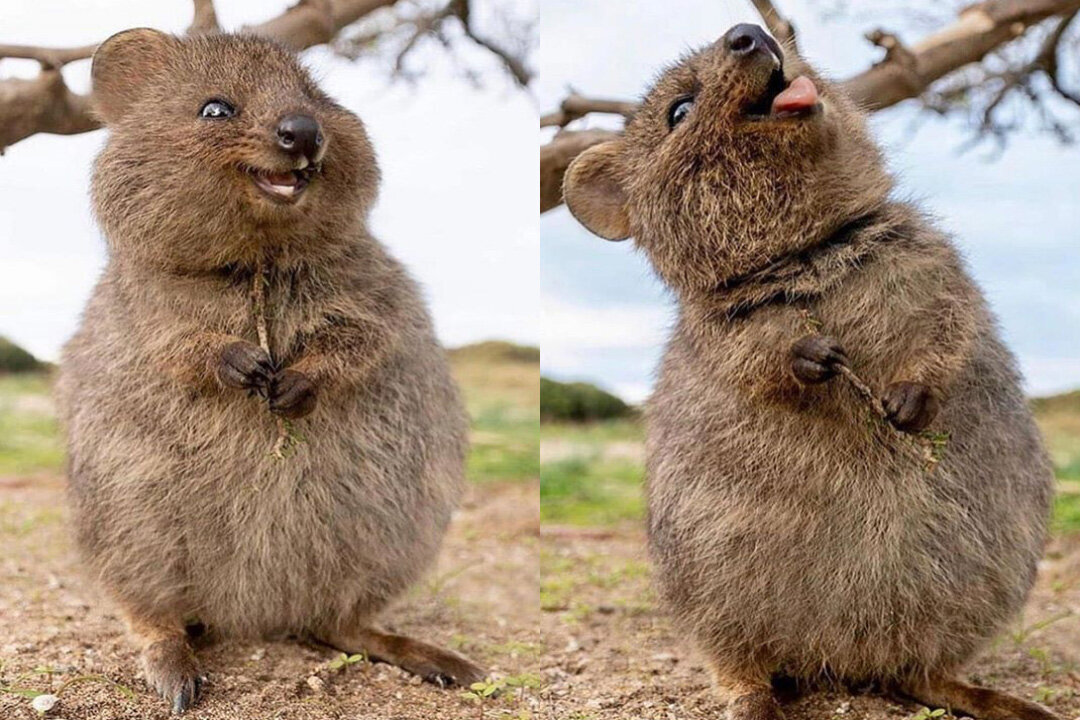 Когда я впервые увидел у себя в ленте это чудо, то подумал, что это фотошоп. Но оказалось, что этот источник позитива реален и зовут его квокка. Это безобидное существо имеет такую потешную мимику, и настолько миролюбиво, что данные обстоятельства стали использовать блогеры и делать с ним сэлфи, а сам квокка получил титул "Самое Счастливое Животное Земли". Всё дело в том, что животное обитает в местах, где нет хищников, а потому не привыкло бояться кого-либо и ведёт себя доверчиво. Где же такие места, спросите вы? На самом западе Австралии. В пустынных территориях в районе городка Албани, да ещё на нескольких мелких островках у побережья, куда не добрались завезённые людьми собаки и кошки. Как вы могли догадаться (раз животное из Австралии), квокка – сумчатый зверь. Близкий родственник кенгуру. Размером с кошку или зайца. Питается растительной пищей и ведёт преимущественно ночной образ жизни. Несмотря на то, что численность этих животных мала и вид имеет статус "уязвимый", квокка не т