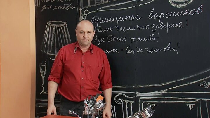 Для того чтобы правильно приготовить вареники, важно сконцентрироваться на мелочах, то есть на принципах приготовления теста, начинки и нюансах употребления этого блюда. Принцип № 1: Тесто частично заварное! Такое тесто не трескается. Заварим часть муки со сливочным маслом в подсоленной воде. Ставим на нагрев сотейник. Вливаем полстакана кипятка и солим. Добавляем кусочек сливочного масла. Когда масло расплавится, всыпаем полстакана муки. Мешаем на плите. Затем снимаем с конфорки и продолжаем перемешивать. В итоге должен получиться заварной комок. Помещаем в миску. Ставим в другую емкость с холодной водой, чтобы быстрее остужалось. Остывший заварной комок отправляем в миксер. Добавляем одно яйцо. Прокручиваем. Добавляем столовую ложку муки и снова прокручиваем. Если тесто еще слишком жидкое, и вы видите, что оно не раскатается, добавляем еще ложку муки и прокручиваем в миксере. В этом процессе нет никаких цифр и объемов. Следим за консистенцией по ощущениям. Правильно замешанное тесто