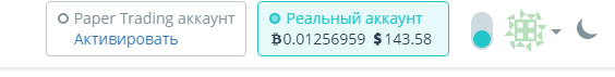 О: На странице "Мои Биржи" нужно найти аккаунт Paper Trading и перейти в просмотр статистики по нему, это делается нажатием на кнопку с иконкой глаза. В верхнем правом углу страницы статистики будет кнопка с иконкой "$", по ее нажатию на счет добавится $1000.