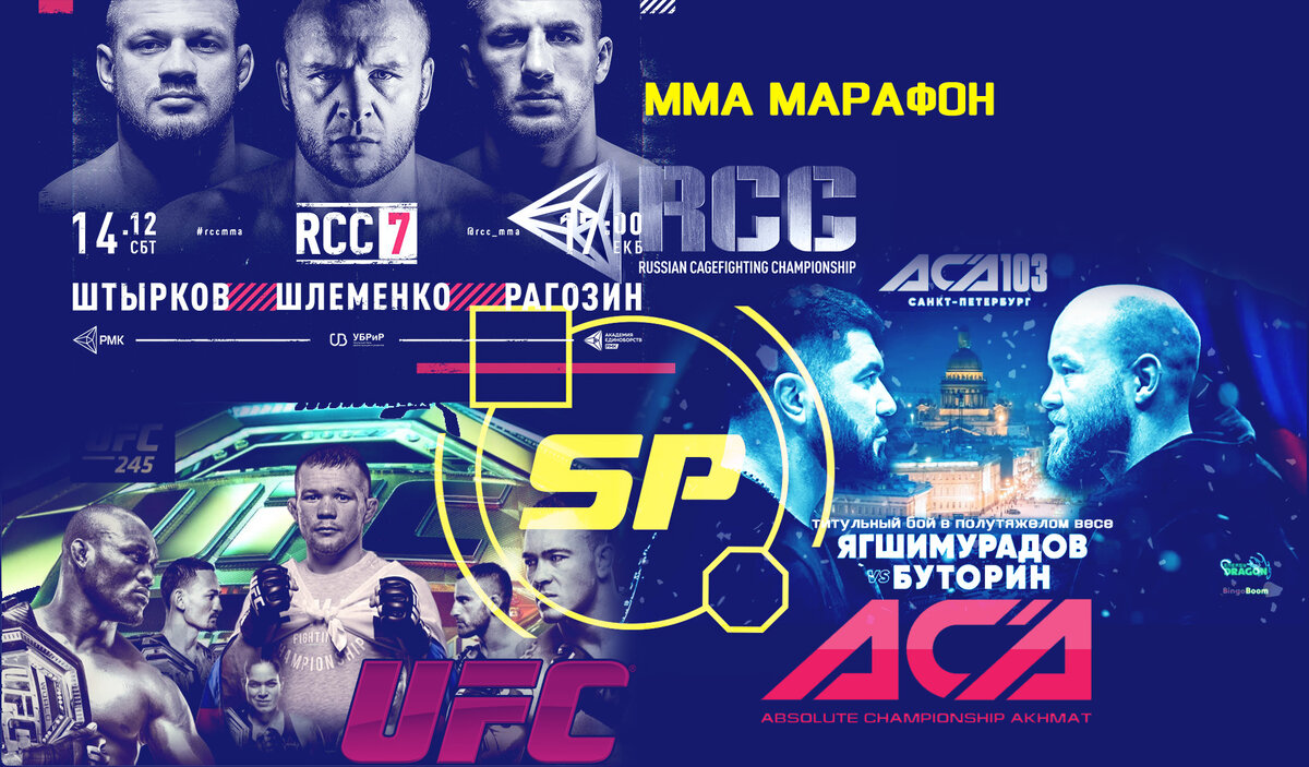 Эти выходные обещают быть очень интересными. Сразу три организации проведут бойцовские вечера мма. От Екатеринбурга до Лас-Вегаса, с субботы по воскресенье, практически без перерыва можно будет насладиться поединками. Начинает бойцовский марафон уральская лига. В главном бою вечера Александр Шлеменко встретится в октагоне с Дэвидом Бранчем который нокаутировал текущего претендента на титул UFC Тиаго Сантоса . В со-главном бою Иван "Уральский Халк" Штырков проверит себя в новом весе против опытного Ясуби Эномото. Итак - 14 декабря (суббота), в 15:00 по московскому времени стартует RCC 7 в Екатеринбурге. Далее через 3 часа подключается Питер где начнется турнир ACA - 103. Да, придётся непросто что-бы успевать смотреть оба турнира, но любителя мма вряд ли что остановит - 2 экрана параллельно и проблема решена! В главном бою питерский нокаутер Алексей Буторин поборется за титул с чемпионом из Таджикистана Давлетджаном Ягшимурадововым. в со-главном бою так-же чемпионский бой где облад