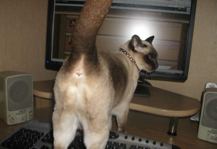 Если кошка начинает слишком активно расчесывать и вылизывать заднюю часть тела, многие хозяева грешат на паразитов, вызывающих зуд. В действительности домашних животных часто беспокоят воспаления параанальных мешков – маленьких железок, расположенных по бокам ануса чуть ниже его середины. Хотя лечение параанальных желез у кошек действительно необходимо не во всех случаях, в помощи хозяев питомцы все-таки нуждаются, поэтому на ряд признаков стоит обращать внимание: частое вылизывание ануса; расчесывание при езде по полу задней частью; беспокойное поведение при дефекации. В норме мешочки с содержимым для меток территории, имеющиеся у особей обоих полов, регулярно опорожняются сами, в том числе одновременно с кишечником. Но у многих домашних любимцев эта способность отсутствует вообще или исчезает со временем. Длительное накапливание в железах жидкого пахучего секрета приводит к его загустению, и переполненный мешок воспаляется, вызывая дискомфорт. Если не вмешаться вовремя, вероятны о