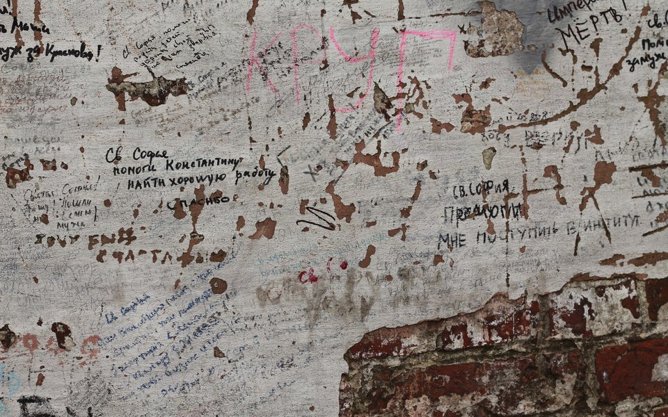 Хотя церковь не причислила царевну Софью к лику святых, на стенах Новодевичьего монастыря в Москве верующие оставляют ей свои пожелания и просьбы. Esquire посмотрел, о чем сейчас мечтают россияне. «Хочу создать хорошую семью с достойным человеком и жить в Москве». «Софья тебя умоляю чтобы Алексей бросил пить» «Русланчик и Дианочка вместе навсегда!» «Хочу лего» «Софья помоги найти высокооплачиваемую работу» «Хочу вернуться в Москву!» «Хочу девушку и высокую должность» «Святая Софья! Умоляю о мире на Донбассе. Чтоб ополченцы вернулись к семьям живыми и здоровыми». «Чтобы работа налаживалась, объектов много» «Хочу прожить с Золотушкиным Андреем» «Чтобы Яна приехала в Москву со следующим туром» «Я хачу пахудеть» «Хочу бросить курить» «Помоги в бизнесе сыну Диме и мне спасибо!» «Хочу жениться на марийке. Дима» «Святая София помоги мне сдать экзамен в ГАИ» «У меня хорошая торговля» «Святая Софья! Помоги моей Ане раскрыть себя» «#софушка» «Я хочу закончить школу без 3!» «Софья не причислена к