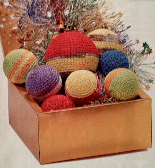 Потребуется: пряжа разного цвета (100% мерсеризованный хлопок), крючок № 1,5, пластмассовые елочные шары.
