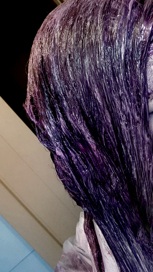 Из покрасочной комнаты с гордым названием санузел, я вышла не только с нанесенной на волосы краской, но и с перепачканной физиономией. А всё потому, что эта цветная гадость постоянно норовила изменить мне не только цвет волос, но для кучи еще и мою расу... Причем она явно была готова на компромисс со мной и предлагала вместо негроидной (раз уж я не хочу ТАКОЙ цвет кожи), стать хотя бы модным далматинцем... 🤦♀️ Впрочем, постепенно краска изменила свой цвет на тёмно-фиолетовый и перед моими глазами пролетели картинки не самых симпатичных представителей синюшного цвета лица 🤪 Я сопротивлялась, испачкала себя, белый шкафчик (придется закрашивать), стены.... странно, что до потолков еще не добралась. Но как-то всё-таки я на нас с волосами нанесла краску и оставила её привыкать ко мне на целых 40 минут, после чего предполагалась головомойка. Выйдя из ванны я помчалась доделывать домашние дела, которые остались меня ждать, когда я ушла воевать с головой.