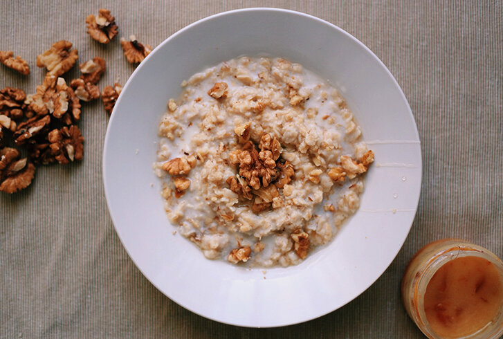 Овсяная каша - одно из полезнейших блюд на завтрак. Она является отличным источником сложных углеводов, имеет уникальный состав, насыщает организм полезными веществами, повышает тонус и предотвращает разные заболевания. Ингредиенты: (на 1 порцию) Овсяные хлопья (крупные) - 4 ст. ложки Вода - 1 стакан Сливочное масло - 10 гр Сливки - 50 гр Сахар - 1 ч. ложка Способ приготовления: 1. В мультиварку положить овсяные хлопья, залить водой Поставить готовиться в режиме "каша" 2. За 10 минут до готовности добавить сливки и сахар 3. За 5 минут до готовности добавить сливочное масло В готовую кашу добавить на усмотрение фрукты или орехи. Очень вкусно с яблоком или бананом Приятного аппетита :) Еще один вариант полезного и вкусного завтрака, который готовится за 10 минут - Овсяно-банановые оладьи Если статья оказалась полезной, оцените, пожалуйста лайком. Вам не сложно, а мне приятно) Больше рецептов на канале Ты то, что ты ешь