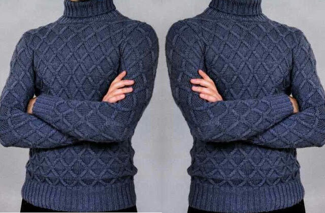 Доброго времени суток уважаемые рукодельницы. Наши мужчины тоже нуждаются в утеплении. Предлагаю вам идею для творчества, свитер-водолазка с геометрическим узором, красивый, модный и актуальный для текущего сезона. Как вам такая моделька? Свяжем нашим любимым? Если понравилась, тогда берём спицы в ручки и за дело 😉 Размер: 54 Материалы: 600 г пряжи темно-серого цвета (50% шерсть, 50% акрил, 280 м/ 100 г), круговые спицы №4. Резинка: вязать по схеме 1. На схеме указаны лицевые, изнаночные ряды вязать по рисунку. Повторять в высоту с 1 -го по 2-й ряды. Геометрический узор: вязать по схеме 2. На схеме указаны лицевые, изнаночные ряды вязать по рисунку. Повторять в высоту с 1-го по 14-й ряды. Спинка: пряжей набрать 100 п. и вязать 8 см резинкой по схеме 1. Продолжить вязание геометрическим узором по схеме 2. На высоте 56 см от наборного ряда для образования пройм с обеих сторон в каждом лицевом ряду закрыть 1 раз по 5 п., 1 раз по 2 п., 3 раза по 1 п. На высоте 68 см от наборного ряда