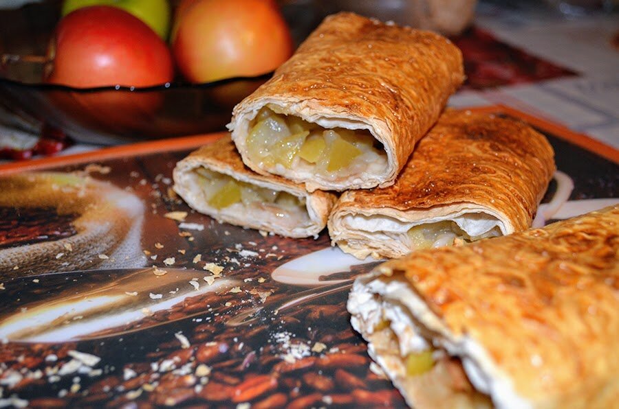 Яблочный рулет из лаваша. Штрудель. Быстро и вкусно