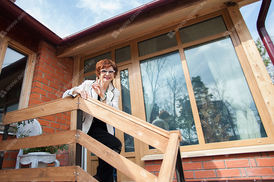 Для заслуженной артистки России мы постарались на славу — установили оконный профиль OKONTI Bravo с энергосберегающим теплопакетом DS «Красное золото». В такой комбинации они идеально сохраняют тепло и не пропускают в квартиру шум. Профиль мы ламинировали в цвет «Дуб Антик», чтобы окно вписалось в интерьер.