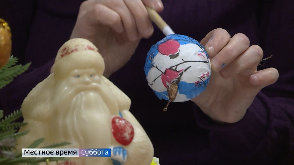 Новогоднюю елку-красавицу они сегодня наряжают игрушками, сделанными своими руками. Нашему корреспонденту Нине Глизнице пришлось пройти с ними даже мастер-класс, чтобы узнать, как украсить ёлку именно владимирскими узорами. Так игрушки крепили в 60-е годы 20 века. Прищепки крепко держали изделия из толстого стекла. Старинными игрушками - уже семейными реликвиями - нарядили ёлку и участники мастер-класса по декупажу - декоративной техники. Картинка или узор присоединяются на заготовку, и покрываются лаком. В дело идут обычные пенопласт, картон и салфетки. Такие елочные игрушки, как на нашем видео, можно создать, даже не обладая никакими живописными талантами. - Делать надо очень быстро. Иначе клей высыхает и уже не даёт салфеточке прилипнуть. Салфетка вся оторвется. Ещё одна техника - владимирская. Раньше такими узорами украшали кухонную утварь. На мастер-класс Ира Мезенцева приходит уже второй раз. Самодельные игрушки ей нравятся больше, чем из магазина. - Самодел