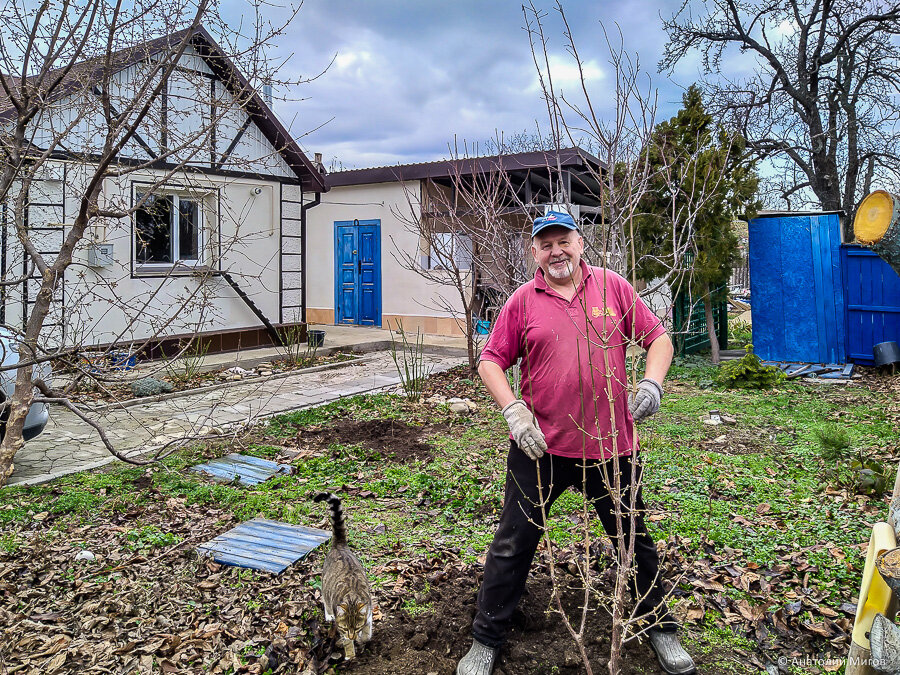 Сегодня по плану у меня было перенести кизил поближе к забору, а на его место пересадить розу Сахара. С кизилом получилось, но потом пошел дождь и я отложил розу на завтра. Кизил отличный, сортовой, из питомника, называется "Семен". Ягоды крупные и сладкие. Пересаживать его мне приходится уже второй раз. Мы с сыном его этой весной перенесли из сада под окна кухни-столовой. Ему там было тесно. Первую пересадку он перенес легко и летом плодоносил. У меня своя технология безболезненной для деревьев пересадки, я про нее рассказывал. У кизила огромное количество мелких корешков. И еще я вынул его с хорошим комом земли. Так что он даже не заметит, что оказался на новом месте. На месте кизила будет мощная парковая роза Сахара. Рядом уже растет красная роза Катеринка. А между ними куст шаровидной хризантемы. Теперь будет законченный вид вдоль дорожки. На всю операцию у меня ушло 40 минут. Хватило бы и полчаса, но я уже свернул шланги и законсервировал на зиму систему полива. Так что пришлось х
