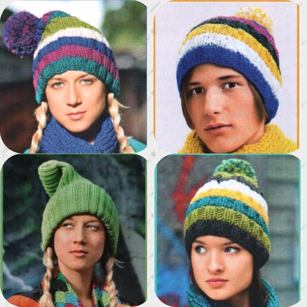 6 моделей комплектов: цветные шапочки и шарфы.