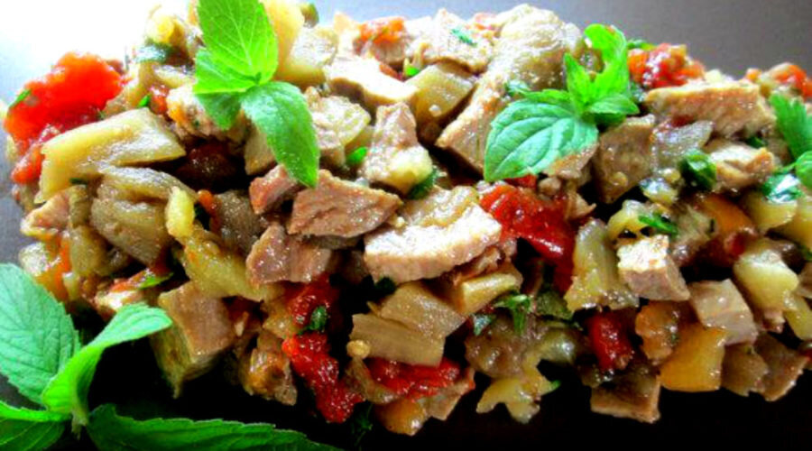 Не смотря на то, что мясо утки к диетическим не относится, однако включать в рацион его нужно обязательно. Оно богато многими микроэлементами, протеинами, витаминами группы В. В этом салате из запеченных овощей и утки прекрасное сочетание всех компонентов. Немаловажную роль в нем играет заправка. Она объединяет овощи с уткой, обволакивая их своим остро-пряным маслянистым вкусом, создавая невероятную вкусовую гамму. Вместо острой пасты чили, которая первоначально присутствовала здесь, я приготовила свою - не очень острую заправку из запеченных томатов. Но можно по вкусу включить и острый перец чили или пасту из него. На праздничном столе обязательно найдется место для этого яркого и вкусного салата. Рецепт на 4 порции, время приготовления 1 час + маринование 6-8 часов. Нам необходимы следующие ингредиенты