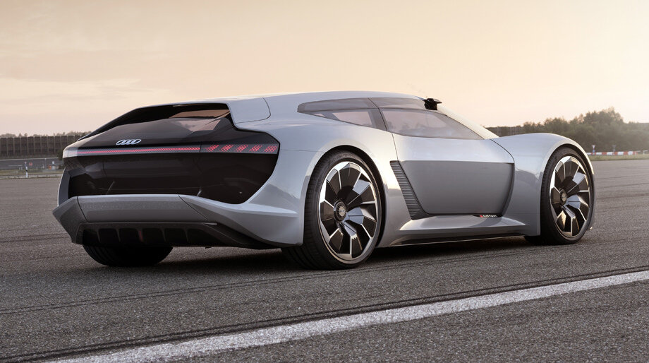 Всем привет друзья. audi снова поражают своей фантазией на pebble beach в калифорнии дебютировал электрический суперкар audi. Пройти стороной такой автомобиль я не смог и захотелось подробно рассказать о нем. Облик суперкара разработан в новой дизайнерской студии audi в малибу. Авторы выбрали для концепта силуэт с удлиненной крышей и широкой задней стойкой. Напоминает универсалы типа shooting brake. Объем багажника составляет немало-470 литров только вдумайтесь ведь это не кроссовер. Раз уж коснулись цифр то немного о размерах авто . Длина равна 4,5 метров, высота 1,15 метров, колесная база 2,7 метра. Колесные диски на 22 дюйма с ассиметричными спицами напоминающими лопасти турбины. Они помогают охлаждать углеродо-керамические тормозные диски и шины 275 на 35 спереди, и 315 на 30 сзади При создании данного концепта разработчики черпали вдохновение из прежних разработок компании audi в частности мелкосерийного спорткара r8 e-tron и ряда других ,но в особенности гибридного спорт-пр
