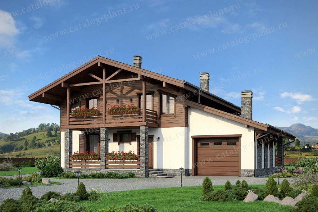 Общая площадь: 226 м² Террасы,балконы: 52,14 м² Габариты: 14.6x13.5 м Высота конька: 7.96 м Наружные стены: арболитовые блоки 400 Фундамент: монолитная ж/б плита Перекрытия: монолитные ж/б Крыша: мансардная Кровля: металлочерепица Наружная отделка: штукатурка,обшивка деревом,искусственный камень Цоколь: нет Архитектурный стиль: шале Подробнее о проекте:
