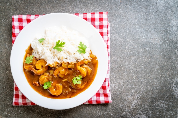 Ингредиенты: Приготовление: Приготовить рис. На растительном масле пожарить креветки с нарезанным имбирём и чесноком. Добавить кокосовое молоко, приправу карри и мёд. Обжарить до готовности, подать с рисом! Посетите сайт vkoosnoff.ru здесь содержится огромная коллекция лучших рецептов, которые помогут вам готовить кулинарные шедевры на каждый день. Заходите, ознакамливайтесь и готовьте с пользой. Приятного аппетита! На нашем сайте ещё много интересного: Еда в удовольствие!