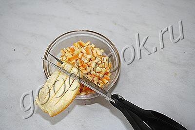 Кожуру мелко порезать (можно настричь кухонными ножницами).