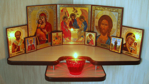 Выбрать иконы, чтобы создать домашний иконостас, достаточно трудно. Здесь нет общего для всех случаев совета, выбор индивидуален. Верующий человек, должен прислушаться к голосу своего сердца и сделать выбор, к какому святому он ежедневно будет обращаться с молитвой. Главными являются образы Богородицы и Христа. Существует много вариантов изображения Христа, но для дома обычно выбирается образ Господа Вседержателя. Из изображений Богородицы отдается предпочтение: Владимирской, Жировицкой, Почаевской, Ярославской, Одигитрии, Казанской, Тихвинской. Особого регламента размещения икон нет. По традиции в доме отводили место, которое именовали «божница» или «красный угол». Обычно выбирают восточную сторону, но если интерьер не позволяет, можно разместить в любом месте. Иконы ставятся на отдельную полку или вешаются на стену. Основное условие, чтобы перед ними было свободно и человек смог прочитать молитву. Церковь приветствует наличие Святого лика в каждой комнате. Хорошо, если икона висит на
