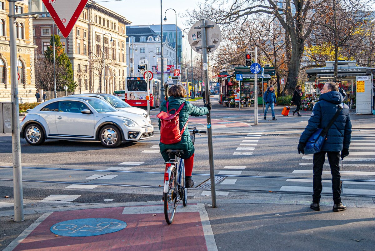 Из своих поездок по Европе я вынес одно довольно простое наблюдение: соблюдение ПДД как водителями, так и пешеходами зависит только от менталитета, но никак не от размера штрафов. Уже не раз в этом убеждался и во время моей недавней поездки в Австрию и Словакию еще раз это понял, посмотрев на резкий контраст между тотальным соблюдением Правил в Австрии и полным правовым нигилизмом в Словакии. Давайте с примерами, чтобы не быть голословным. Эта фотография была сделана в Вене, Австрия. Довольно широкий проспект, для пешеходов и велосипедистов (да, велосипедные дорожки у них в порядке вещей) горит красный свет. Тем не менее машины тоже стоят, а проезжающих мимо машин нет. Каковы были бы действия каждого второго нашего с вами соотечественника? Конечно же, перейти дорогу. — "Зачем ждать, когда загорится зеленый, если машин все равно нет?" И это не недостаток нашего с вами менталитета: просто мы так выросли, для нас это является нормой. У них же нормы другие и с детства в голову им вдалблив